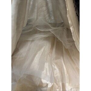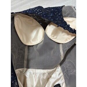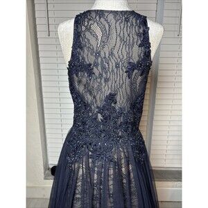 Xscape Navy Blue Lace Beaded tulle overlay Evening Gown Size 8 Formal Prom