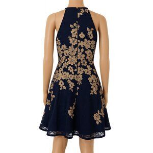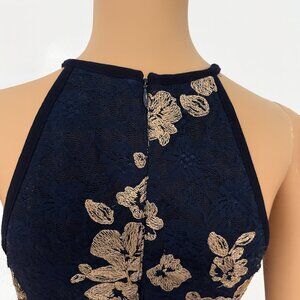 Xscape Navy Floral Halter Fit & Flare Lined Cocktail Dress - Size 10