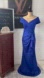 Brand new, beautiful XScape blue off shoulder gown. Stretchy. Size 6.