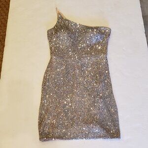 Xscape One Shoulder Silver Sequen Cocktail Evening Dress Size 6