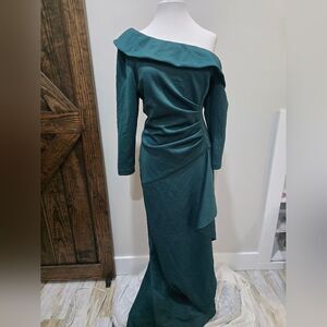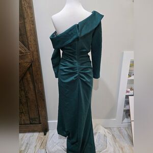 Xscape One-Shoulder Long Sleeve Scuba Crepe Gown NWT size 10 Green