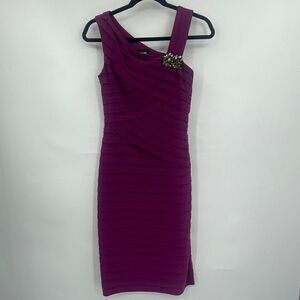 Xscape Purple Lined Sleeveless Layered Stretch Cocktail Mini Dress Size 6