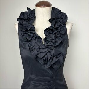 Xscape by Joanna Chen little black dress. Ruffle neck body com dress with side zip closure. Fully lined. Has some stretch.