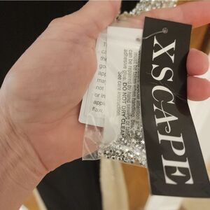 Xscape "Sarah" Long Jersey Knit with Caviar Beaded Sides Dress SIZE 4 NWT