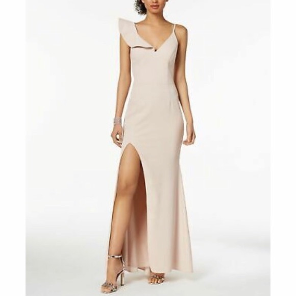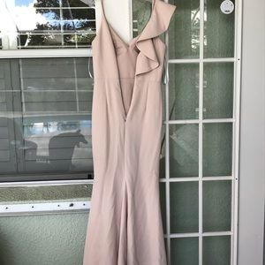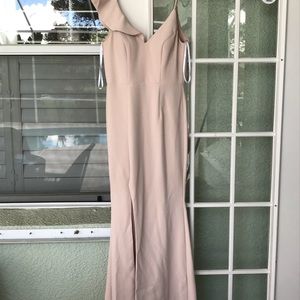 This is a GORGEOUS dress I bought to wear to a formal wedding last summer. I’ve lost weight since and it’s too loose on me now. It’s been worn once and has a couple of small dirt spots on it but I will be dry cleaning it before it’s sold. The seam below the zipper also ripped apart about an inch and a half, but I sewed it back together before wearing it out to the wedding. The stitching I did below the zipper is not visible from the outside of the dress and held up perfectly while wearing it.