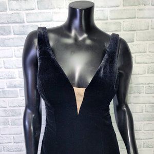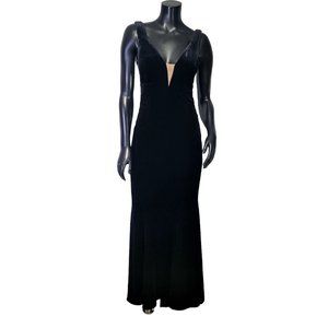 Xscape Size 2 Evening Gown Black Velvet Rhinestone Side Detailing Mermaid Dress