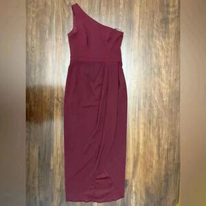 Xscape Size 8 One Shoulder Dress Burgundy Formal Midi Mother Of Bride Holiday NWOT