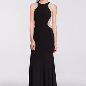 Xscape Sleeveless Long Dress with Beaded Sides Size 4