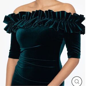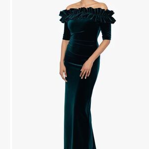 Xscape "TIFFANY" LONG VELVET 3/4 SLEEVE RUFFLE TOP DRESS