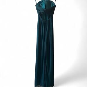 Keywords: Xscape teal formal gown, beaded halter maxi dress, open back chiffon eveningwear, elegant teal prom dress, bridesmaid gown, gala or wedding guest dress