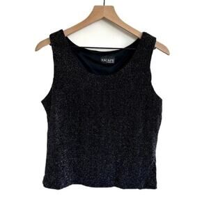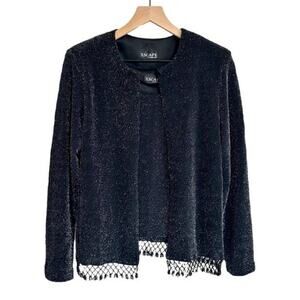 Xscape Two Piece Metallic Black Beaded Fringe Cocktail Set Size L