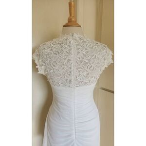 Xscape White Jersey, Chiffon and Lace Empire Waist Gown with side Draped Oversk