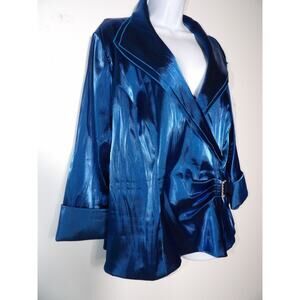 Xscape Woman By Joanna Chen 22W Silky Blouse Royal Blue Rhinestone Buckle Formal Top Regal