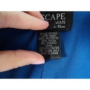 Xscape Woman By Joanna Chen 22W Silky Blouse Royal Blue Rhinestone Artsy Formal