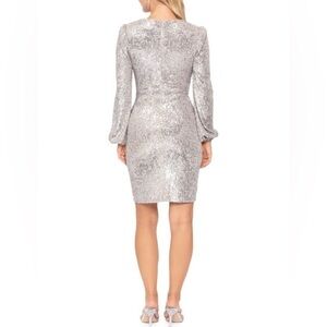 Xscape Women's V-Neck Long-Sleeve Ruffled Sequin Dress - Nude Silver size 12