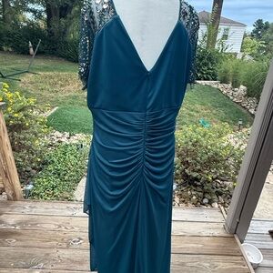 Chic teal maxi skirt by Xscape. Flows elegantly for