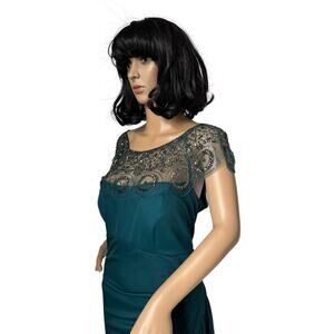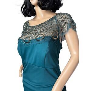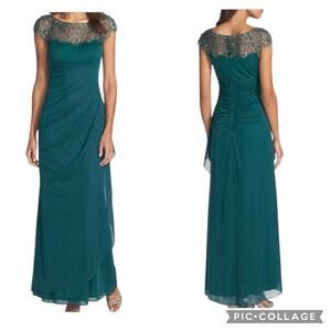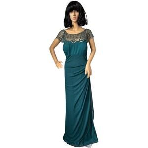 Xscape Xscape Women's Short Sleeve Beaded Illusion Neckline Ruched Gown 16 W
