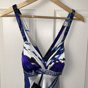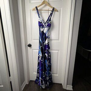 Very pretty abstract print dress, great for parties, prom, or formal gathering, still has tags