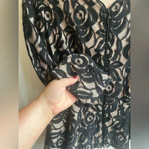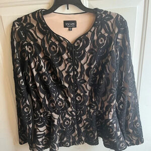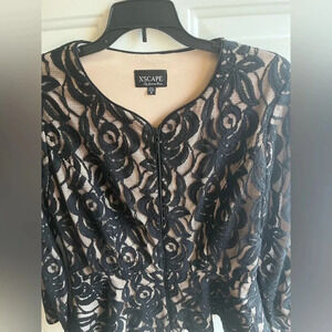 Xscape by Joanna Chen Black Lace Peplum Zip Up Fancy Formal Jacket Size 6