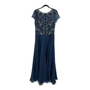 Xscape dress Jerri beaded short sleeve chiffon gown blue size 8