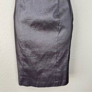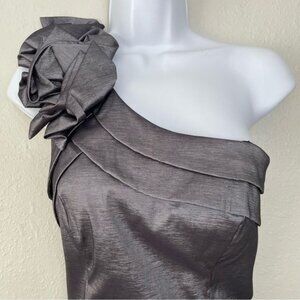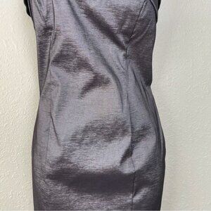Great pre-owned condition. One shoulder with bow. Metallic gray. Hidden under arm zipper. Lined.
