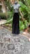 We start with a stretch velvet and a waistband with plenty of stretch as well. This beautiful skirt fits close to the body and then trumpets out at the hymn with a series of inset chiffon Gores. This skirt was made for dancing in excellent condition.