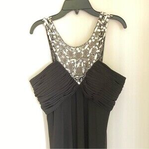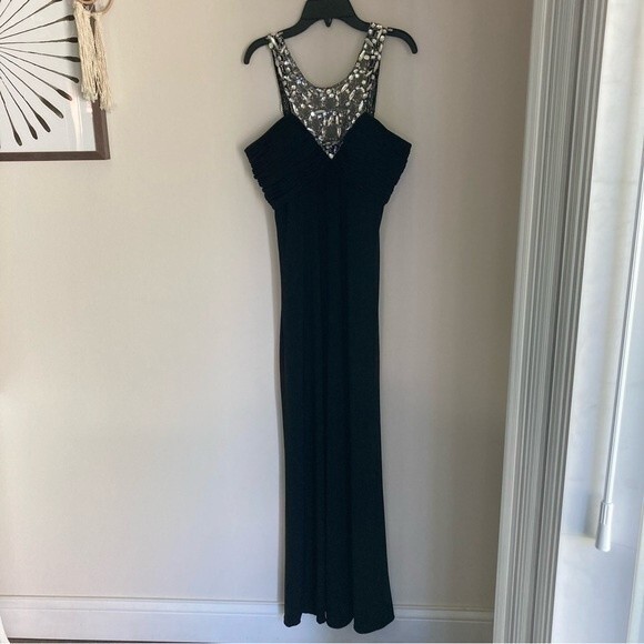 Xscape women’s black jeweled rhinestone halter full length dress size 10.