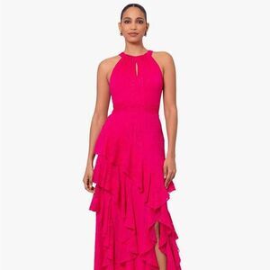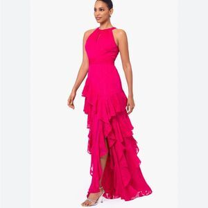 Xscape 5548XP Pink Long Metallic Chifon Tiered Ruffle 14P $269