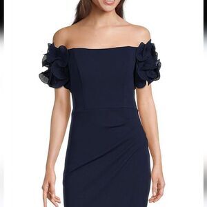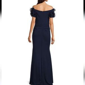 XscapeRosette Off-the-Shoulder Short Sleeve Ruffle Ruched Waist Gown Size 12 NWT