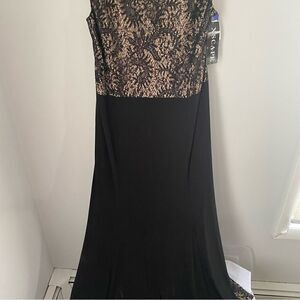 Xscape Women's Sequined Lace Panel High Neck Sleeveless Maxi Dress size 18W
