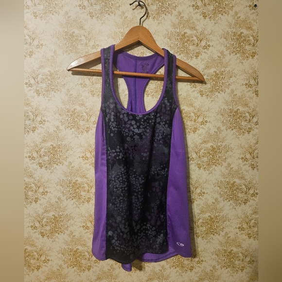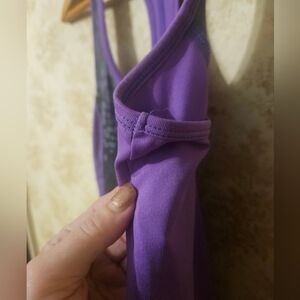 Champion size x-small purple, black and silver/Grey racer back style tank.
