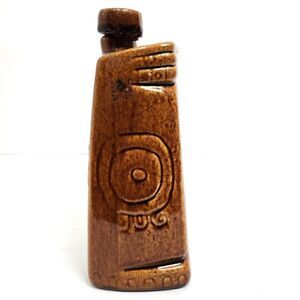 Xtabentun Mayan Carvings 750 ml Decanter Bottle 8" With Cork & Sticker RARE