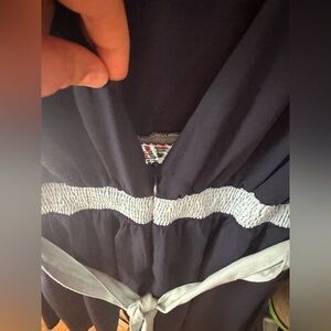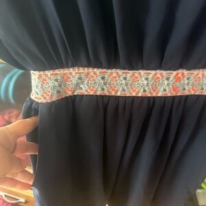 Xtaren Blue Cap Short Sleeve Embroidered Waisted Mini Dress