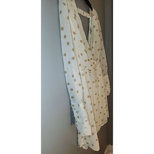 Cream and tan long sleeve polka-dot babydoll dress. Apx 18" armpit to armpit 13" elastic waist 32" long