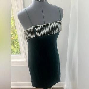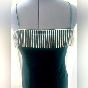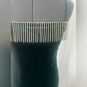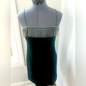 Xtraordinary Sz L Emerald Green Velvet Bodycon Rhinestone Fringe Slip Dress NWT