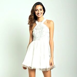 exudes elegance with its lace embellishments and modern design. Whether you’re attending a wedding or a fancy soirée, this lace dress will make you stand out Halter Neckline, A-Line Dress, Special Occasion Wear