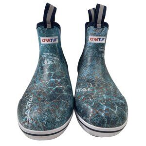Xtratuf Deck Boots Men's size 10 Blue Camo Mossy Oak Slip On Ankle Boat Shoes Nautical 6"