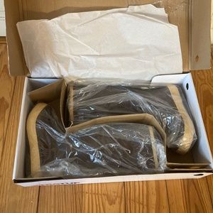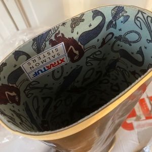 Salmon Sisters are artists and fisherwomen in Alaska who partner with fishing gear company Xtratuf to make awesome, sturdy and cute outdoor/work gear. These 15" high (calf height) boots have a mermaid print on the inside and can be folded down to show off their pretties, or kept up for maximum rain coverage. Great tread, long lasting, highly functional as a work boot and super cute, selling brand new because the sizing was tricky for a Christmas present and I missed the refund date where I bought them. Boots run small, is what I learned from the misadventure. NWT, in original packaging and boxes, cover photo from Salmon Sisters because I didn't want to mess up your fun new boots by folding them over to show off the mermaids. More details https://aksalmonsisters.com/collections/xtratuf/products/mermaid-legacy-boot