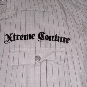 Xtreme Couture Button Up Velour Graphic Long Sleeve Men's XL Gray Stripe