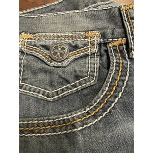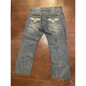 Xtreme Couture Jeans Mens 36x27 Denim Embroidered Thick Stitch Pocket Flap Cross
