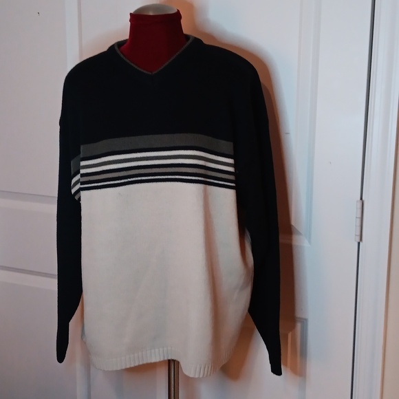 Xtremegear men's v-neck stripped sweater, retro stripes across the chest, oversize, l