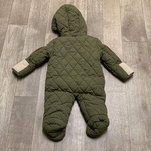 Size 3 mth- 6mths green color with brown/cream. In good condition. No holes, tears or stains.
