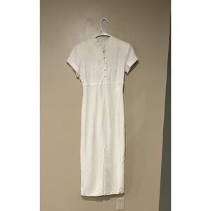 Xtrmz Vintage White/Ivory Lace Button Front Short Sleeve Mock Neck Dress Wedding