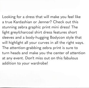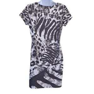 Xxi Gray Zebra Graphic Shortsleeved Mini Bodycon Dress Size Large