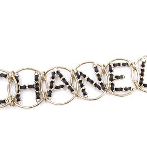 Authentic Chanel necklace in excellent condition with minimal signs of wear on leather and hardware. Chanel spelled out charms size 1.1" x 1.1". Total length of the necklace is approx 14.75". Oval stamp is intact. Dust bag is included. Sku# 35828