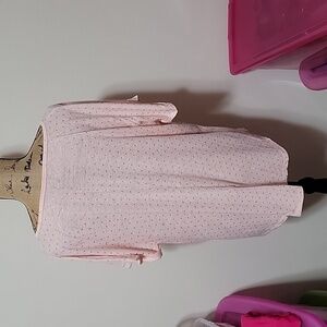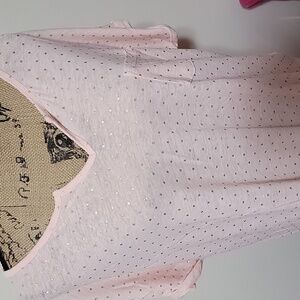 Xxl pink tshirt with gold polka dots. features a pocket, slight v neck and pin tucked sleeves