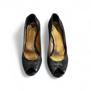 Y2K Coach Peep Toe Heels | Black Monogram Pumps | Made in Italy | Size 7B