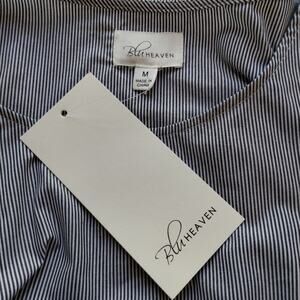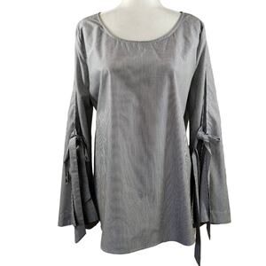 Y Blu Heaven Women's Grey Striped Long Tie Statement Sleeve Top Blouse NWT M details: