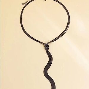 Gunmetal in color knot y lariat tassel fringe statement Necklace. Also available in gold.
