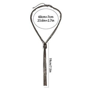 Y Lariat Gunmetal Tassel Fringe Knot Statement Necklace